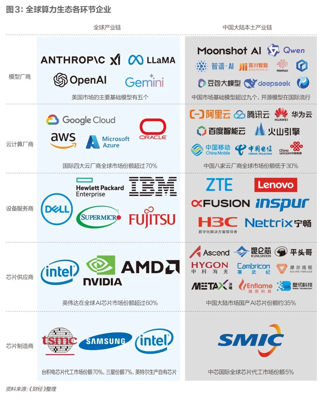 由于美国政府长期对中国实行芯片出口管制,多位行业人士对《财经》表示,在采购同等算力规模的硬件时(如采购英伟达或自研芯片),中国企业的综合采购成本,往往较海外市场高出约20%。这体现在多个环节,如供应链路径拉长导致的渠道溢价,部分国产算力硬件在代工等环节综合成本上升。